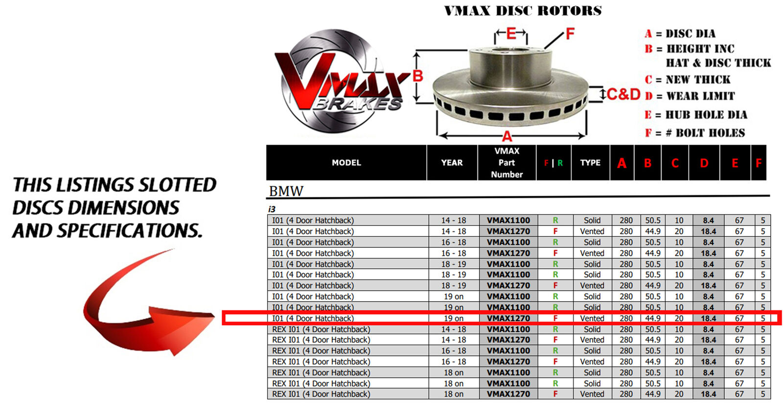 This sale is for a new pair (2 disc rotors) of Genuine VMAX Dimple Drilled & Slotted Performance Front disc brake rotors to suit BMW i3 I01 (4 Door Hatchback) models built 2019 Onwards and are a direct replacement item.
