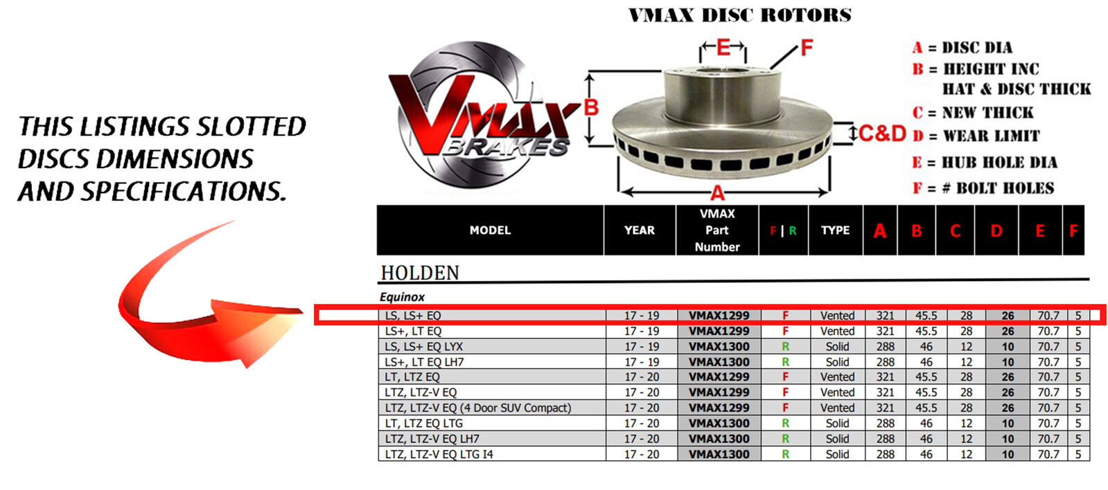 This sale is for a new pair (2 disc rotors) of Genuine VMAX Dimple Drilled & Slotted Performance Front disc brake rotors to suit HOLDEN Equinox LS, LS+ EQ models built 2017-2019 and are a direct replacement item.