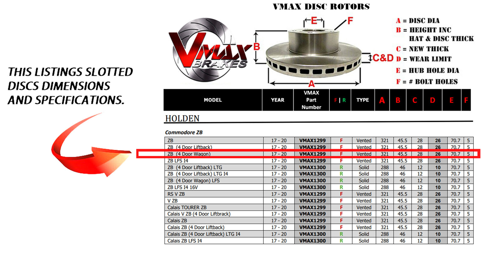 This sale is for a new pair (2 disc rotors) of Genuine VMAX Dimple Drilled & Slotted Performance Front disc brake rotors to suit HOLDEN Commodore ZB ZB (4 Door Wagon) models built 2017-2020 and are a direct replacement item.