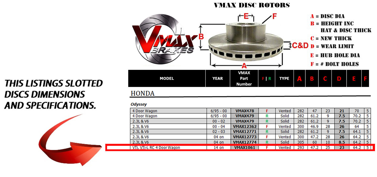 This sale is for a new pair (2 disc rotors) of Genuine VMAX Dimple Drilled & Slotted Performance Front Disc Brake Rotors to suit HONDA Odyssey VTi, VTi-L RC 4 Door Wagon models built 2014 Onwards and are a direct replacement item.