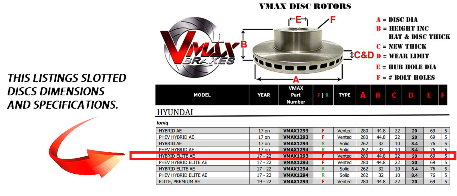 This sale is for a new pair (2 disc rotors) of Genuine VMAX Dimple Drilled & Slotted Performance Front disc brake rotors to suit HYUNDAI Ioniq HYBRID ELITE AE models built 2017-2022 and are a direct replacement item.