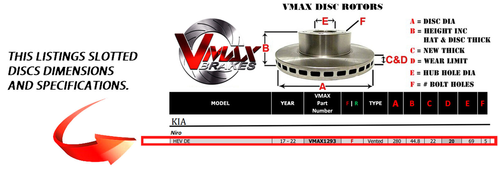 This sale is for a new pair (2 disc rotors) of Genuine VMAX Dimple Drilled & Slotted Performance Front disc brake rotors to suit KIA Niro HEV DE models built 2017-2022 and are a direct replacement item.