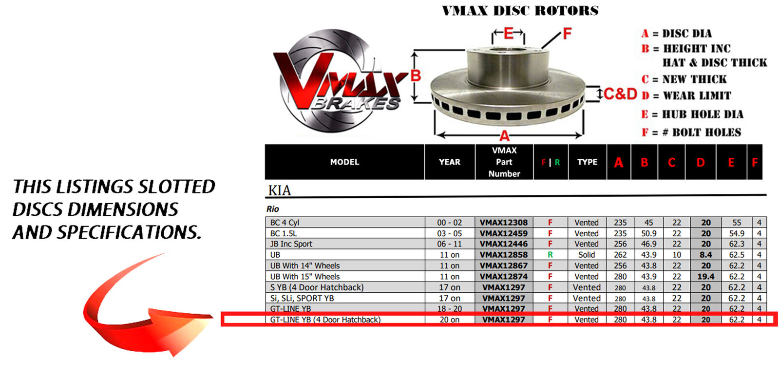 This sale is for a new pair (2 disc rotors) of Genuine VMAX Dimple Drilled & Slotted Performance Front disc brake rotors to suit KIA Rio GT-LINE YB (4 Door Hatchback) models built 2020 Onwards and are a direct replacement item.