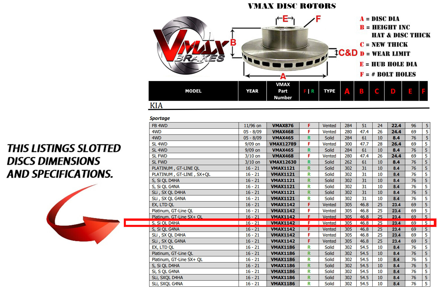 This sale is for a new pair (2 disc rotors) of Genuine VMAX Dimple Drilled & Slotted Performance Front Disc Brake Rotors to suit KIA Sportage S, Si QL D4HA models built 2016 till 2021 and are a direct replacement item.