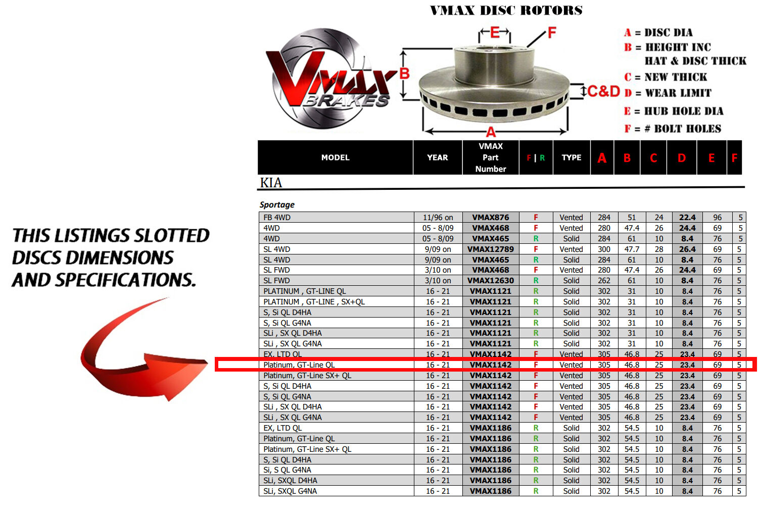 This sale is for a new pair (2 disc rotors) of Genuine VMAX Dimple Drilled & Slotted Performance Front Disc Brake Rotors to suit KIA Sportage Platinum, GT-Line QL models built 2016 till 2021 and are a direct replacement item.