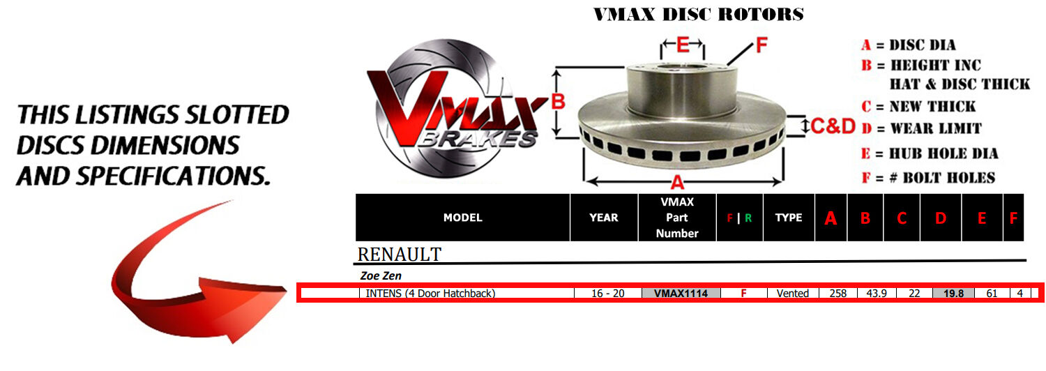 This sale is for a new pair (2 disc rotors) of Genuine VMAX Dimple Drilled & Slotted Performance Front Disc Brake Rotors to suit RENAULT Zoe Zen INTENS (4 Door Hatchback) models built 2016 till 2020 and are a direct replacement item.