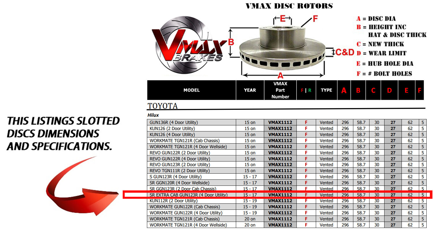 This sale is for a new pair (2 disc rotors) of Genuine VMAX Dimple Drilled & Slotted Performance Front Disc Brake Rotors to suit TOYOTA Hilux SR EXTRA CAB GUN123R (4 Door Utility) models built 2015 till 2017 and are a direct replacement item.