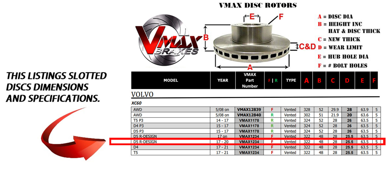 This sale is for a new pair (2 disc rotors) of Genuine VMAX Dimple Drilled & Slotted Performance Front Disc Brake Rotors to suit VOLVO XC60 D5 R-DESIGN models built 2017 till 2020 and are a direct replacement item.