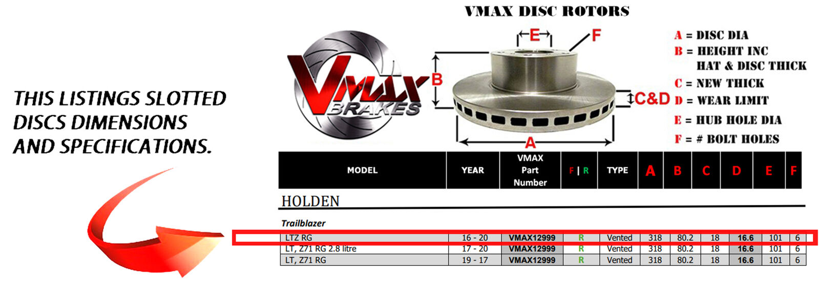 This sale is for a new pair (2 disc rotors) of Genuine VMAX Dimple Drilled & Slotted Performance Rear disc brake rotors and a matching Front set of brake pads to suit HOLDEN Trailblazer LTZ RG models built 2016-2020 and are a direct replacement item.