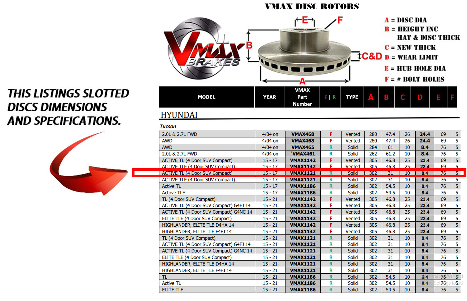 This sale is for a new pair (2 disc rotors) of Genuine VMAX Dimple Drilled & Slotted Performance Rear Disc Brake Rotors and a matching Rear set of brake pads to suit HYUNDAI Tucson ACTIVE TL (4 Door SUV Compact) models built 2015 till 2017 and are a direct replacement item.