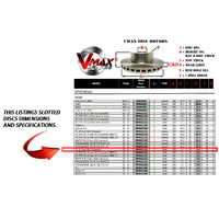 VMAX Rotors are Australian engineered of the highest quality high carbon content hardened cast iron, final machining is done by here in Melbourne in VMAX's Engineering Department, they are Dimpled, Slotted, Balanced, Hardness and Runout tested against manufacturing defects for a full 18m/30,000Km.
