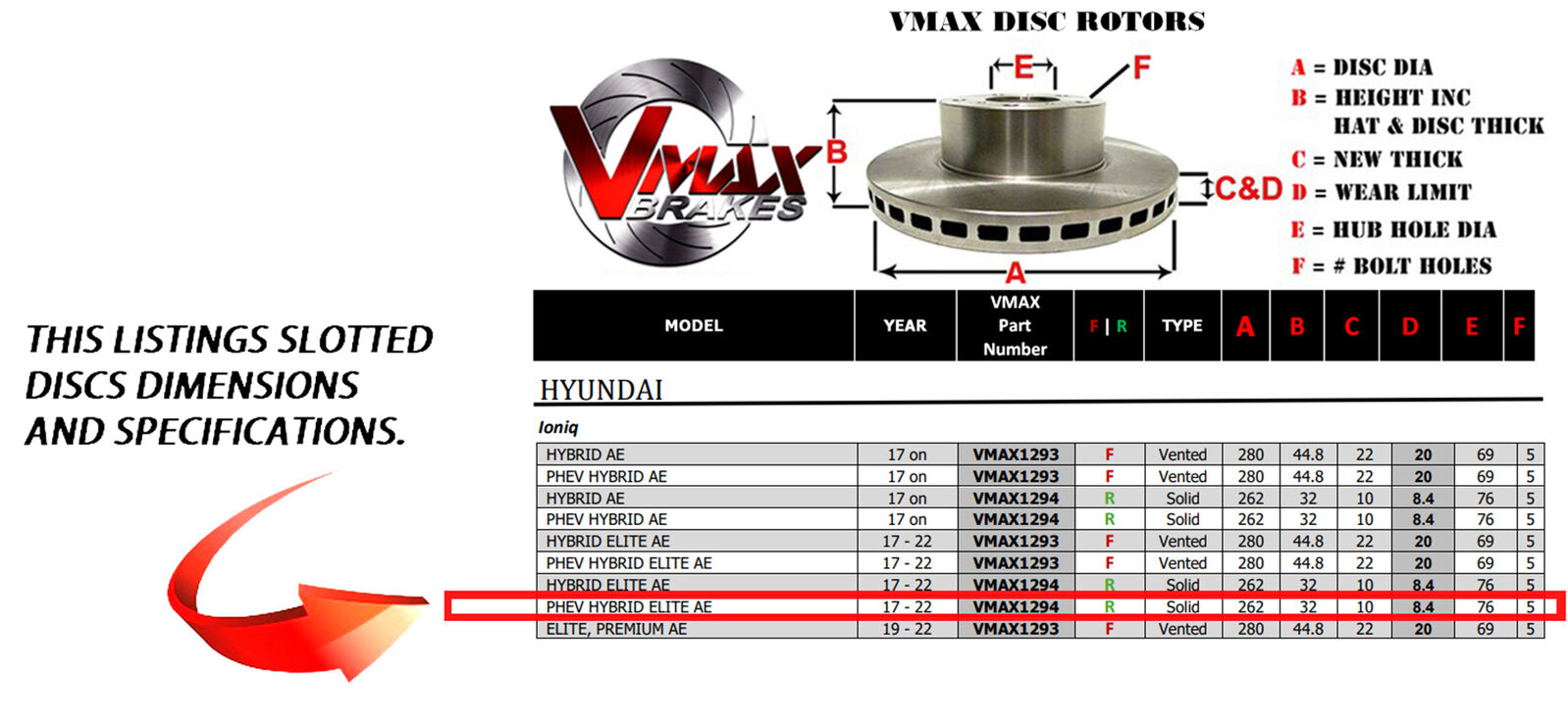 This sale is for a new pair (2 disc rotors) of Genuine VMAX Dimple Drilled & Slotted Performance Rear disc brake rotors and a matching Front set of brake pads to suit HYUNDAI Ioniq PHEV HYBRID ELITE AE models built 2017-2022 and are a direct replacement item.
