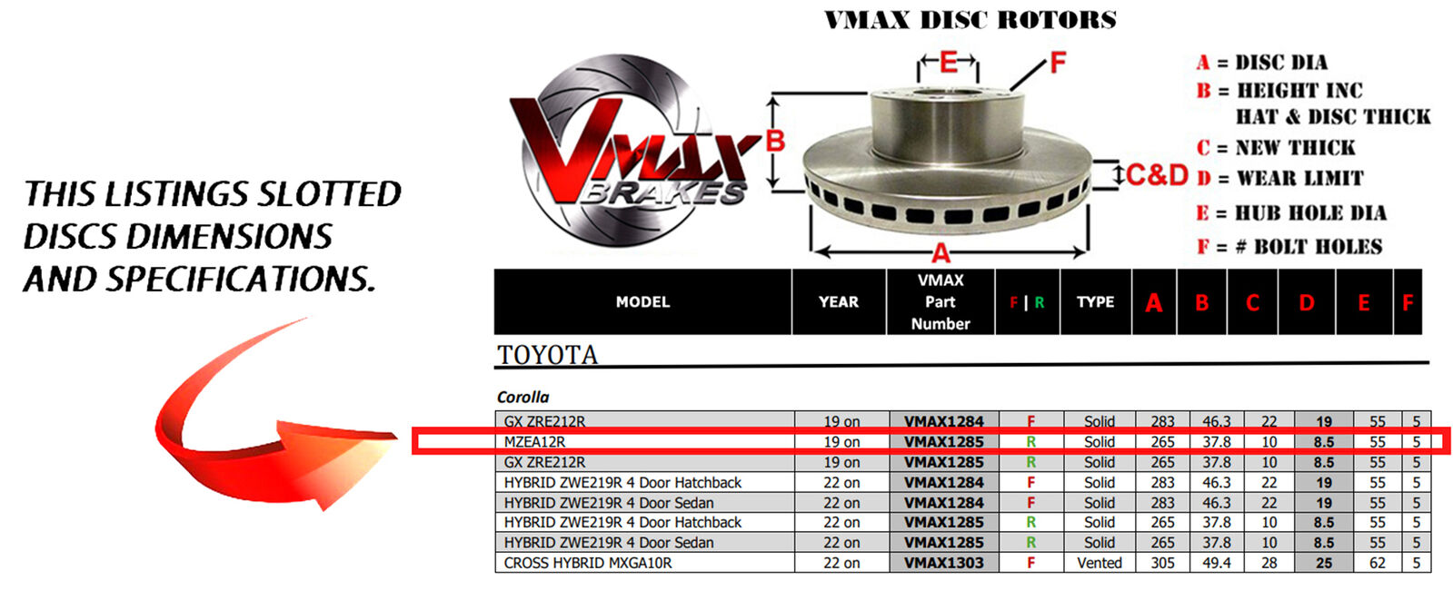 This sale is for a new pair (2 disc rotors) of Genuine VMAX Dimple Drilled & Slotted Performance Rear disc brake rotors and a matching Front set of brake pads to suit TOYOTA Corolla MZEA12R models built 2019 Onwards and are a direct replacement item.