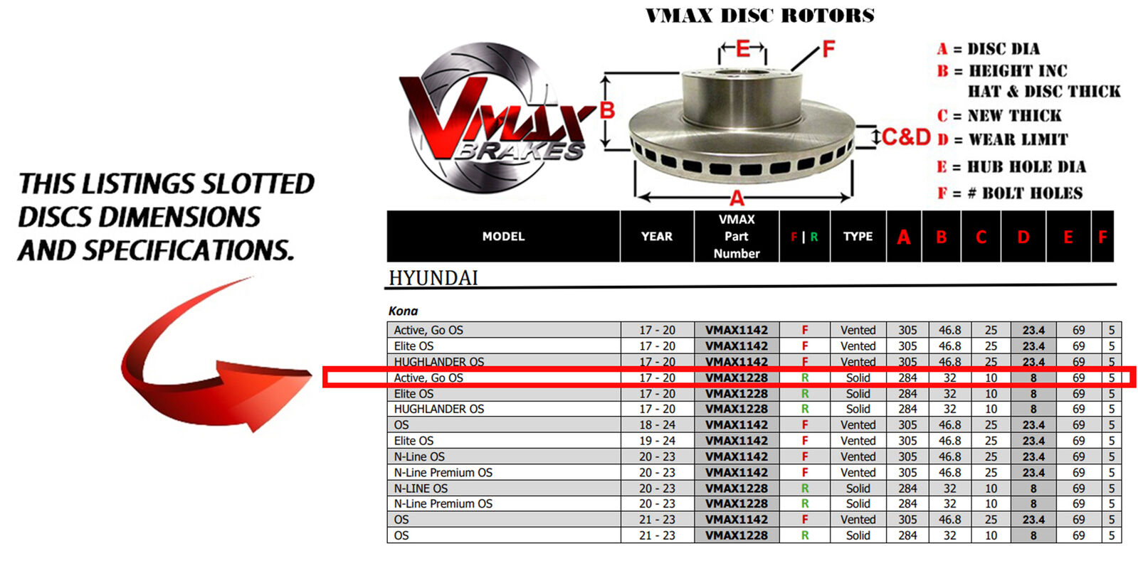 This sale is for a new pair (2 disc rotors) of Genuine VMAX Dimple Drilled & Slotted Performance Rear Disc Brake Rotors to suit HYUNDAI Kona Active, Go OS models built 2017 till 2020 and are a direct replacement item.