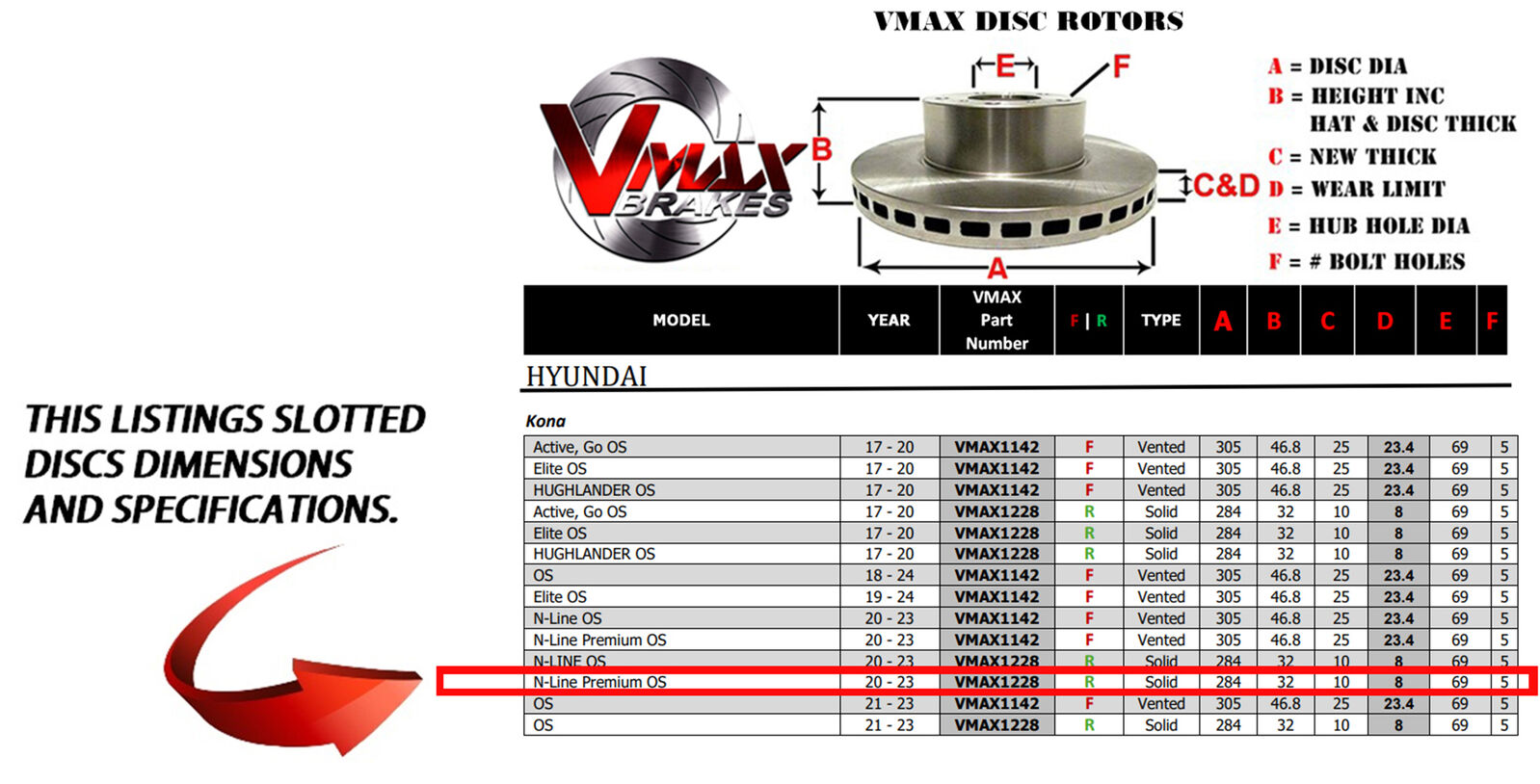 This sale is for a new pair (2 disc rotors) of Genuine VMAX Dimple Drilled & Slotted Performance Rear Disc Brake Rotors to suit HYUNDAI Kona N-Line Premium OS models built 2020 till 2023 and are a direct replacement item.