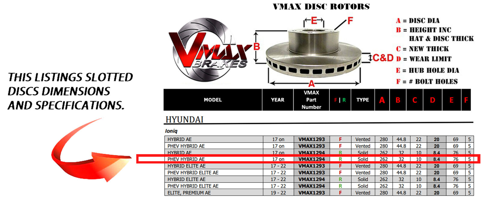 This sale is for a new pair (2 disc rotors) of Genuine VMAX Dimple Drilled & Slotted Performance Rear disc brake rotors to suit HYUNDAI Ioniq PHEV HYBRID AE models built 2017 Onwards and are a direct replacement item.