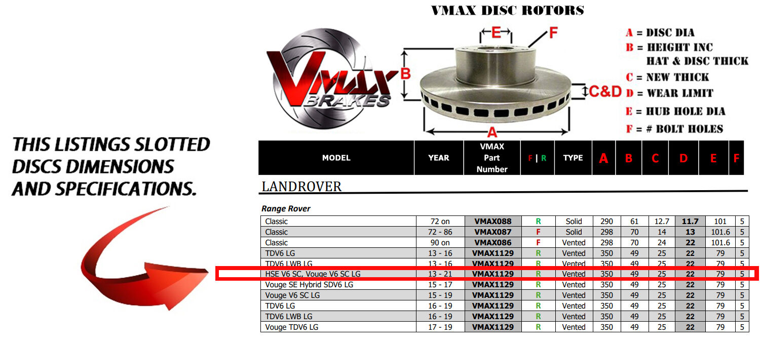 This sale is for a new pair (2 disc rotors) of Genuine VMAX Dimple Drilled & Slotted Performance Rear Disc Brake Rotors to suit LANDROVER Range Rover HSE V6 SC, Vouge V6 SC LG models built 2013 till 2021 and are a direct replacement item.
