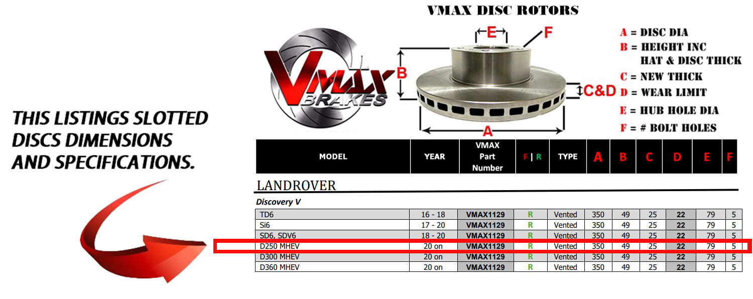 This sale is for a new pair (2 disc rotors) of Genuine VMAX Dimple Drilled & Slotted Performance Rear Disc Brake Rotors to suit LANDROVER Discovery V D250 MHEV models built 2020 Onwards and are a direct replacement item.