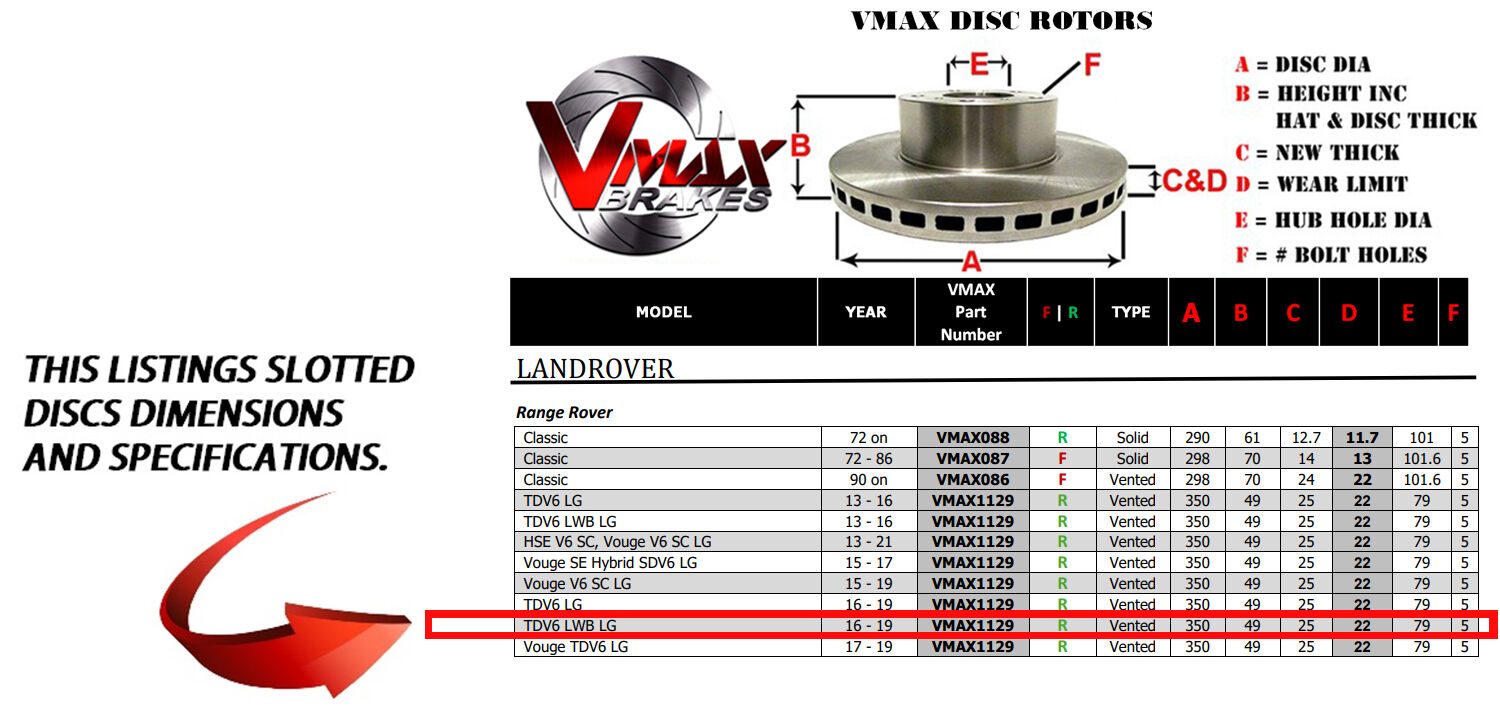 This sale is for a new pair (2 disc rotors) of Genuine VMAX Dimple Drilled & Slotted Performance Rear Disc Brake Rotors to suit LANDROVER Range Rover TDV6 LWB LG models built 2016 till 2019 and are a direct replacement item.
