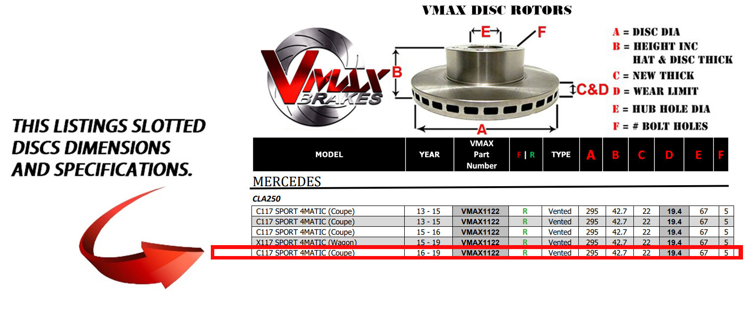 This sale is for a new pair (2 disc rotors) of Genuine VMAX Dimple Drilled & Slotted Performance Rear Disc Brake Rotors to suit MERCEDES CLA250 C117 SPORT 4MATIC (Coupe) models built 2016 till 2019 and are a direct replacement item.