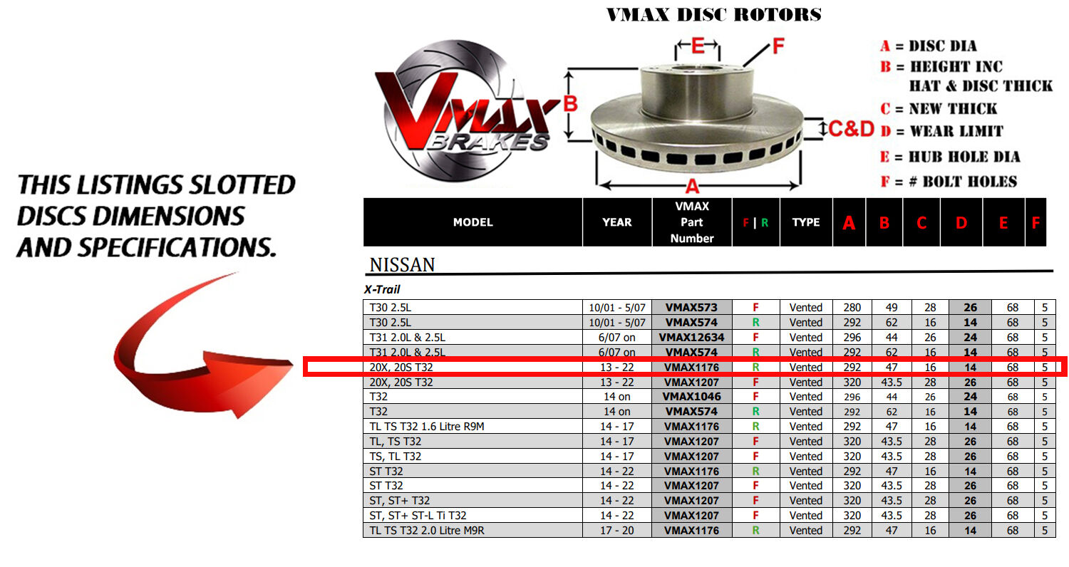 This sale is for a new pair (2 disc rotors) of Genuine VMAX Dimple Drilled & Slotted Performance Rear Disc Brake Rotors to suit NISSAN X-Trail 20X, 20S T32 models built 2013 till 2022 and are a direct replacement item.
