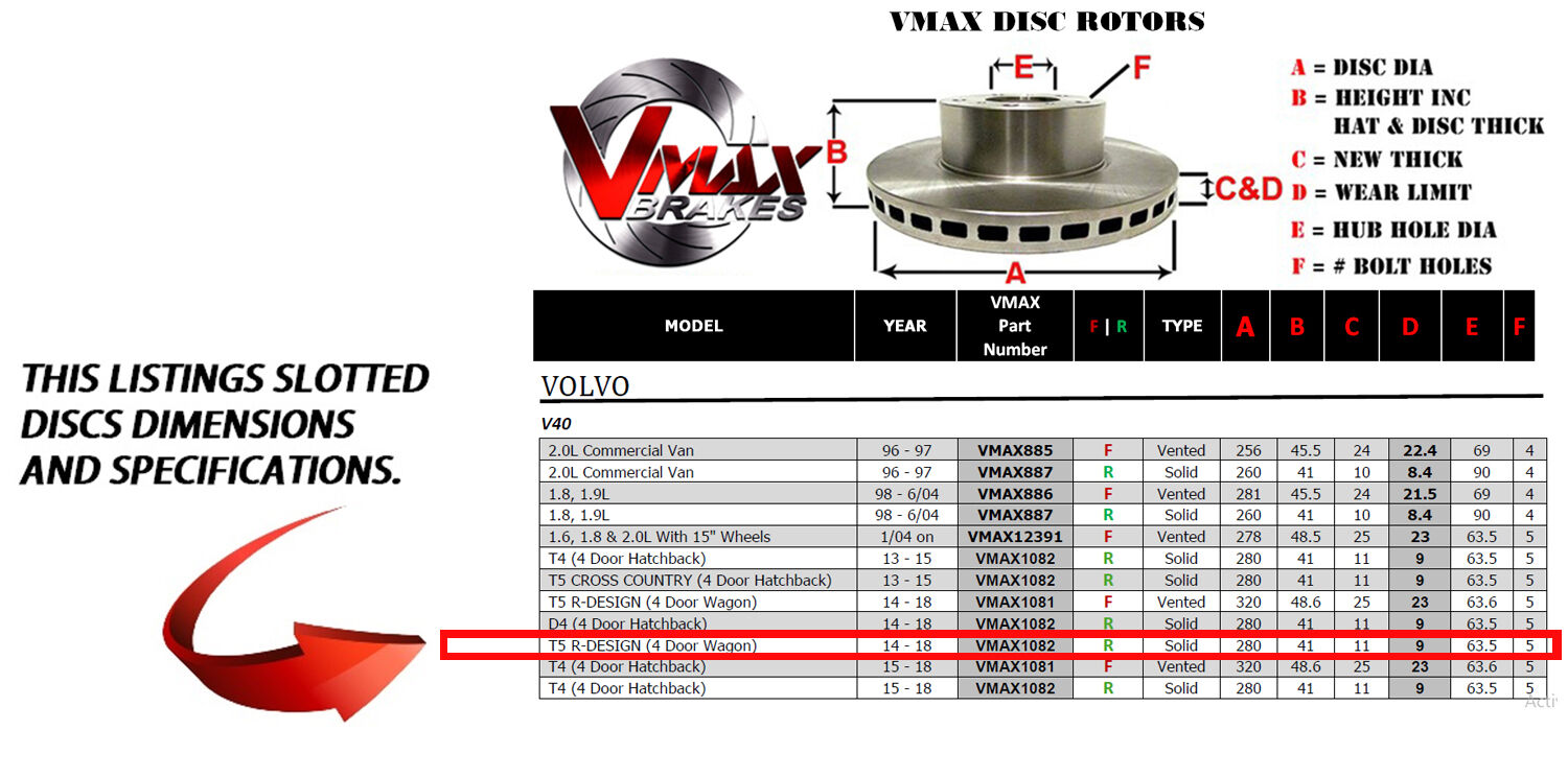 This sale is for a new pair (2 disc rotors) of Genuine VMAX Dimple Drilled & Slotted Performance Rear Disc Brake Rotors to suit VOLVO V40 T5 R-DESIGN (4 Door Wagon) models built 2014 till 2018 and are a direct replacement item.