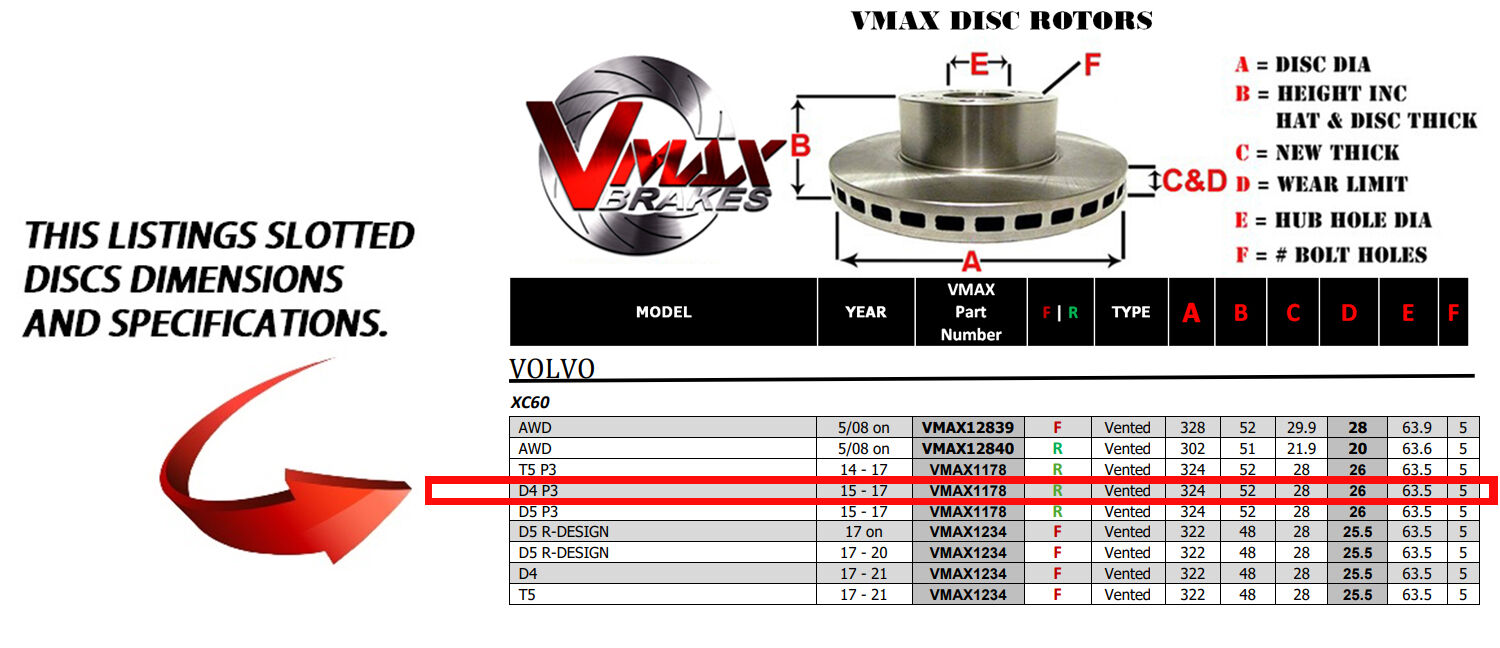This sale is for a new pair (2 disc rotors) of Genuine VMAX Dimple Drilled & Slotted Performance Rear Disc Brake Rotors to suit VOLVO XC60 D4 P3 models built 2015 till 2017 and are a direct replacement item.