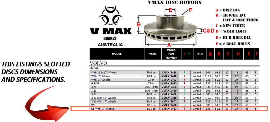 This sale is for a new pair (2 disc rotors) of Genuine VMAX Dimple Drilled & Slotted Performance Front disc brake rotors to suit VOLVO XC90 D5 models built 2011 Onwards and are a direct replacement item.