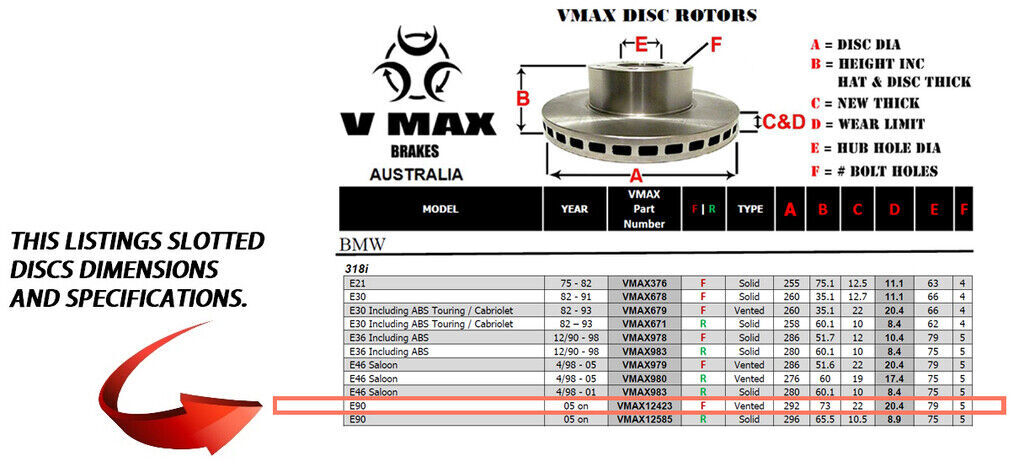 This sale is for a new pair (2 disc rotors) of Genuine VMAX Dimple Drilled & Slotted Performance Front disc brake rotors to suit BMW 318i E90 models built 2005 Onwards and are a direct replacement item.