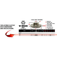 VMAX Rotors are Australian engineered of the highest quality high carbon content hardened cast iron, final machining is done by here in Melbourne in VMAX's Engineering Department, they are Dimpled, Slotted, Balanced, Hardness and Runout tested against manufacturing defects for a full 18m/30,000Km.