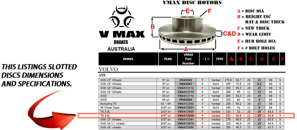 This sale is for a new pair (2 disc rotors) of Genuine VMAX Dimple Drilled & Slotted Performance Rear disc brake rotors and a matching Rear set of brake pads to suit VOLVO V70 T6 3.0L models built 2007 Onwards and are a direct replacement item.