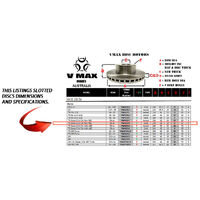 VMAX Rotors are Australian engineered of the highest quality high carbon content hardened cast iron, final machining is done by here in Melbourne in VMAX's Engineering Department, they are Dimpled, Slotted, Balanced, Hardness and Runout tested against manufacturing defects for a full 18m/30,000Km.
